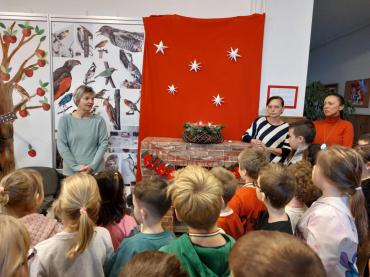 Hétfőn reggel újra összegyűltek alsó tagozatos diákjaink az adventi második gyertyagyújtásra. A hit mellett a remény gyertyáját Éva néni gyújtotta meg nekünk. A karácsonyi hangulatot ezúttal vendégünk, Rajner Ágota varázsolta iskolánkba. A holló című meséjével kalauzolt el minket Betlehembe. Az út során gitárral kísért meghitt dalokkal színesítette a történetet. Vidámságával, kedves dalaival igazi ünnepet varázsolt. Előadása közös énekléssel zárult. Köszönjük szépen Ágota néninek, hogy elfogadta meghívásunkat!