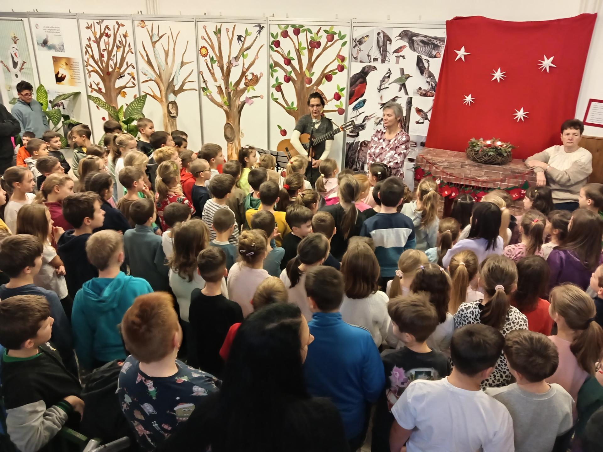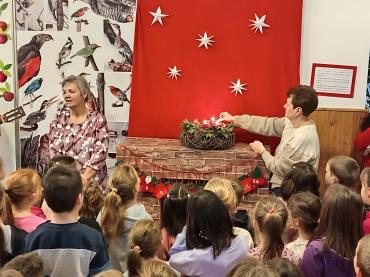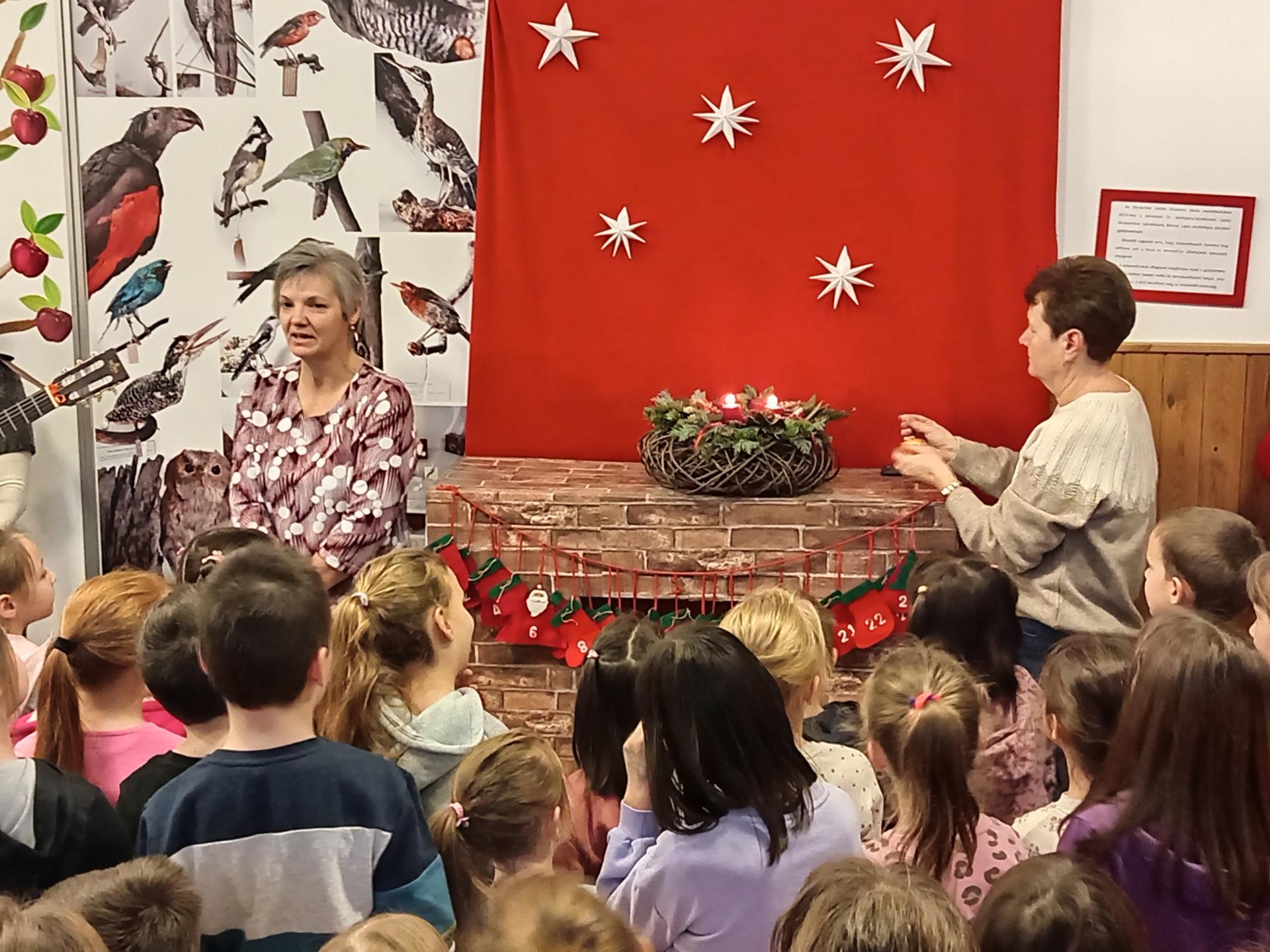 A harmadik adventi vasárnap alkalmából ismét összegyűltek alsó tagozatos tanulóink. Gabi néni gyújtotta meg az öröm gyertyáját. Ismét Rajner Ágota néni jött el hozzánk és mesélt a karácsonyi csillagról. Versekkel, dalokkal kiegészített történetéből megtudhattuk, hogy szeretettel, összetartással mi mindent tehetünk azért, hogy a karácsony fénye ne fakuljon meg. Csillagocska című dal refrénjét és a Lágyan szól a kis harang kezdetű dal közös éneklésével igazi karácsonyi hangulatba kerültünk. Örömmel, várakozással telve kezdtük meg az utolsó adventi hetet.
