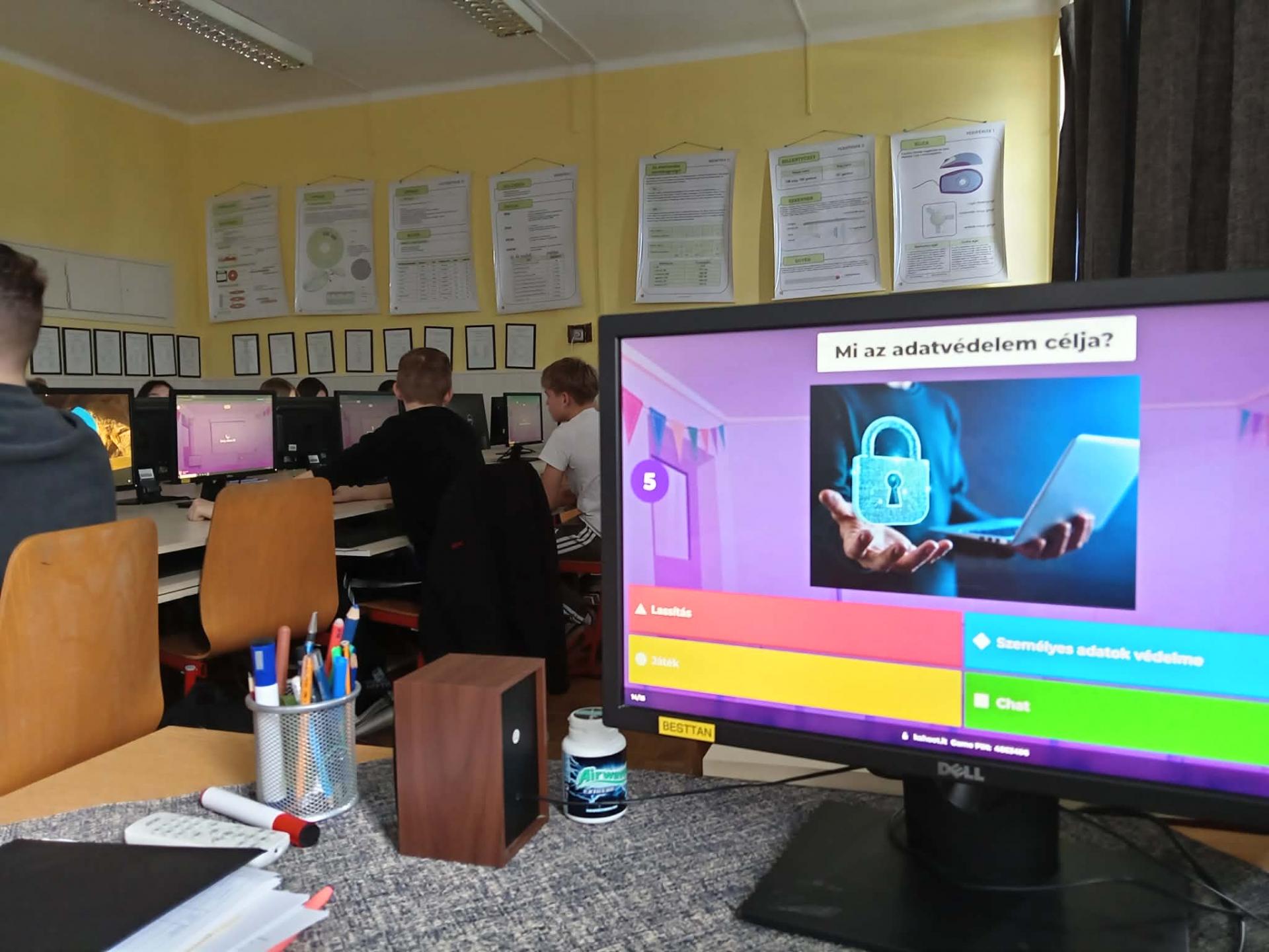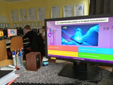 A felső tagozaton a tanulók egy, a digitális tudatosságra és online biztonságra épülő tesztet töltöttek ki. A feladatok érintették a mesterséges intelligencia alapjait, az adatvédelmet, a kiberbiztonságot, valamint az online viselkedés kockázatait. Emellett hangsúlyt kapott a médiatudatosság is, például az álhírek és a kattintásvadász tartalmak felismerése. A program célja a tanulók digitális műveltségének, kritikus gondolkodásának és biztonságtudatos internethasználatának fejlesztése volt.
