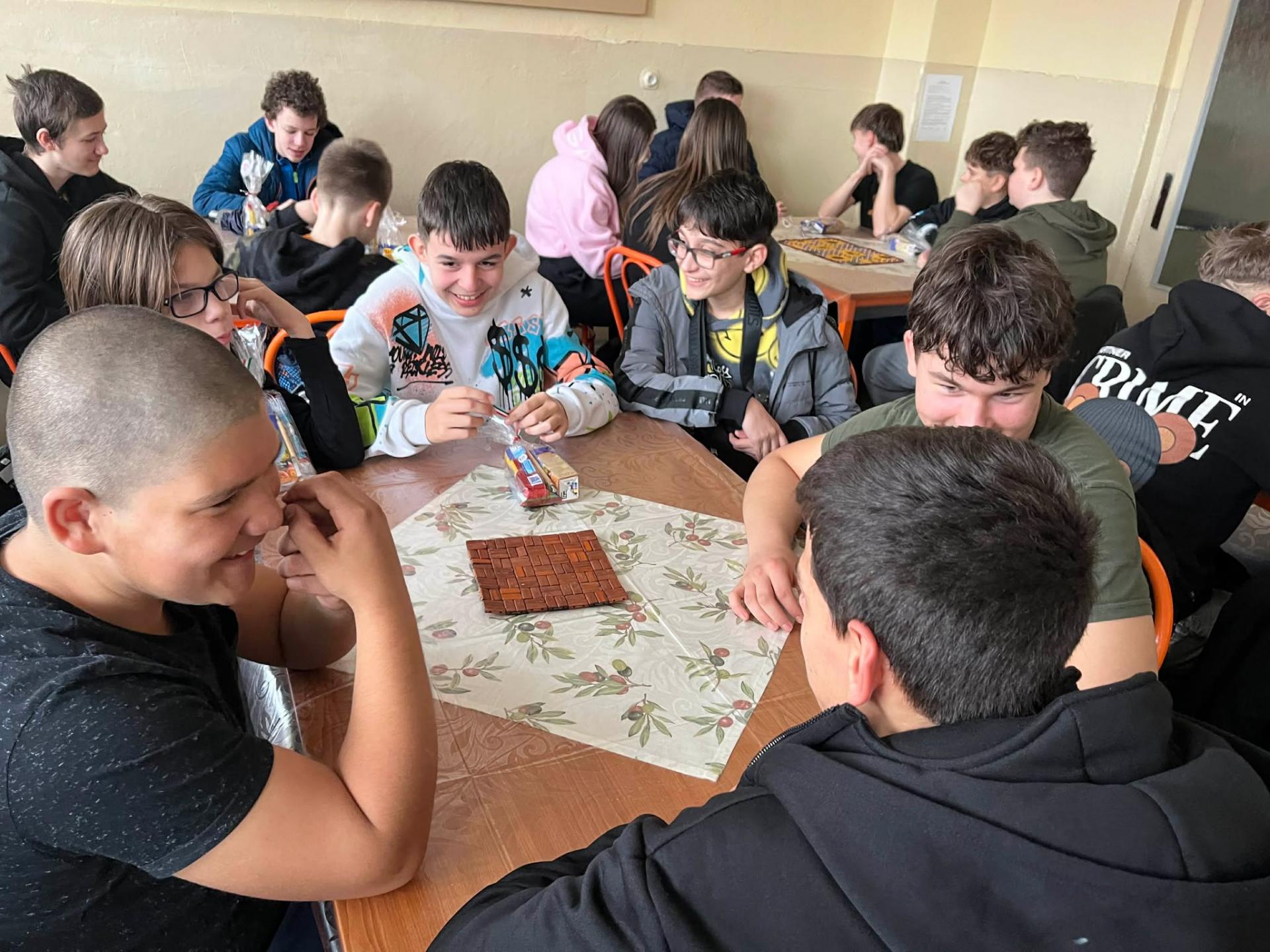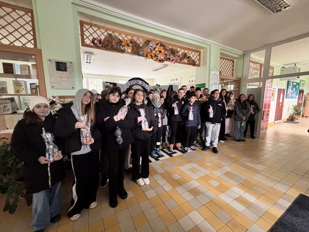 A harmadik napon a csapat biztonsága érdekében változtattunk az előzetesen egyeztetett programon. Mivel a szél és az utak jegesedése miatt kockázatos lett volna nekiindulnunk a Magas-Tátrának, előrehoztuk a pelsőci iskolalátogatást. Tanulóink nemcsak a település történetével ismerkedhettek meg az igazgatónő jóvoltából, hanem a kilencedik évfolyam diákjaival is, akiknek jó hangulatú beszélgetést követően átadták az általuk készített ajándékcsomagokat, benne mindenféle magyar finomsággal. A lányok bekukkantottak az elsősök testnevelésórájára is, ahol együtt kidobóztak a kicsikkel.