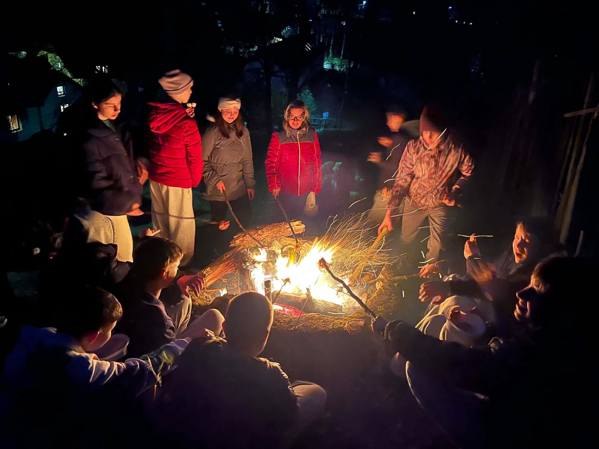 A napot az est leszálltával vidám hangulatú szalonnasütés zárta, amire a lányok a szalonna szeletelésével, a fiúk tűzifa és nyársak gyűjtésével készültek.