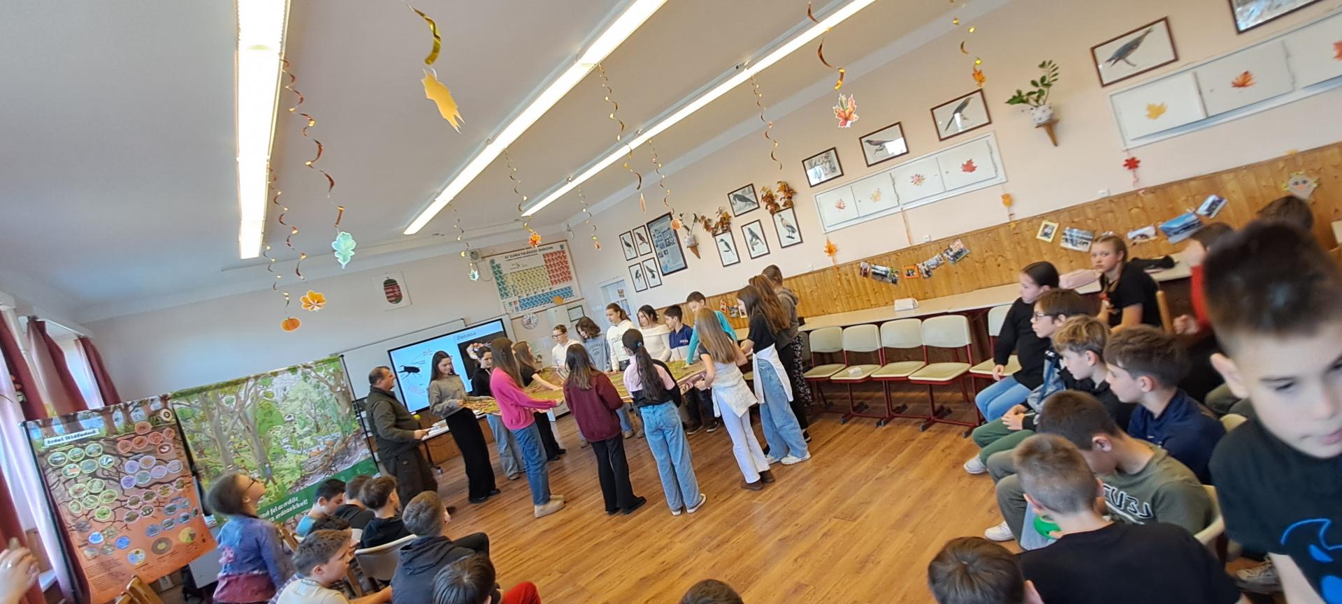Az erdő, mint életközösség nagyon fontos számunkra. Hogy miért is mondjuk ezt? Erre a kérdésre kaphattak választ az 5., 6.évfolyamon és az eltérő tagozaton tanuló diákok. Jánosa László erdész irányításával megismerték az erdő feladatait és az ott élő élőlényeket. Megfigyelhették különböző nagyítók és mikroszkópok segítségével a mikronnyi nagyságú lakóit is. Játszhattak egyensúlyozó és párkereső játékot, és persze kérdéseikre is választ kaptak. Esett szó a gombák hasznáról, a lábnyomokról, a fák jelentőségéről, de még a turistajelzésekről is. Rengeteg ismeretet tanulhattak diákjain ezeken a foglalkozásokon.