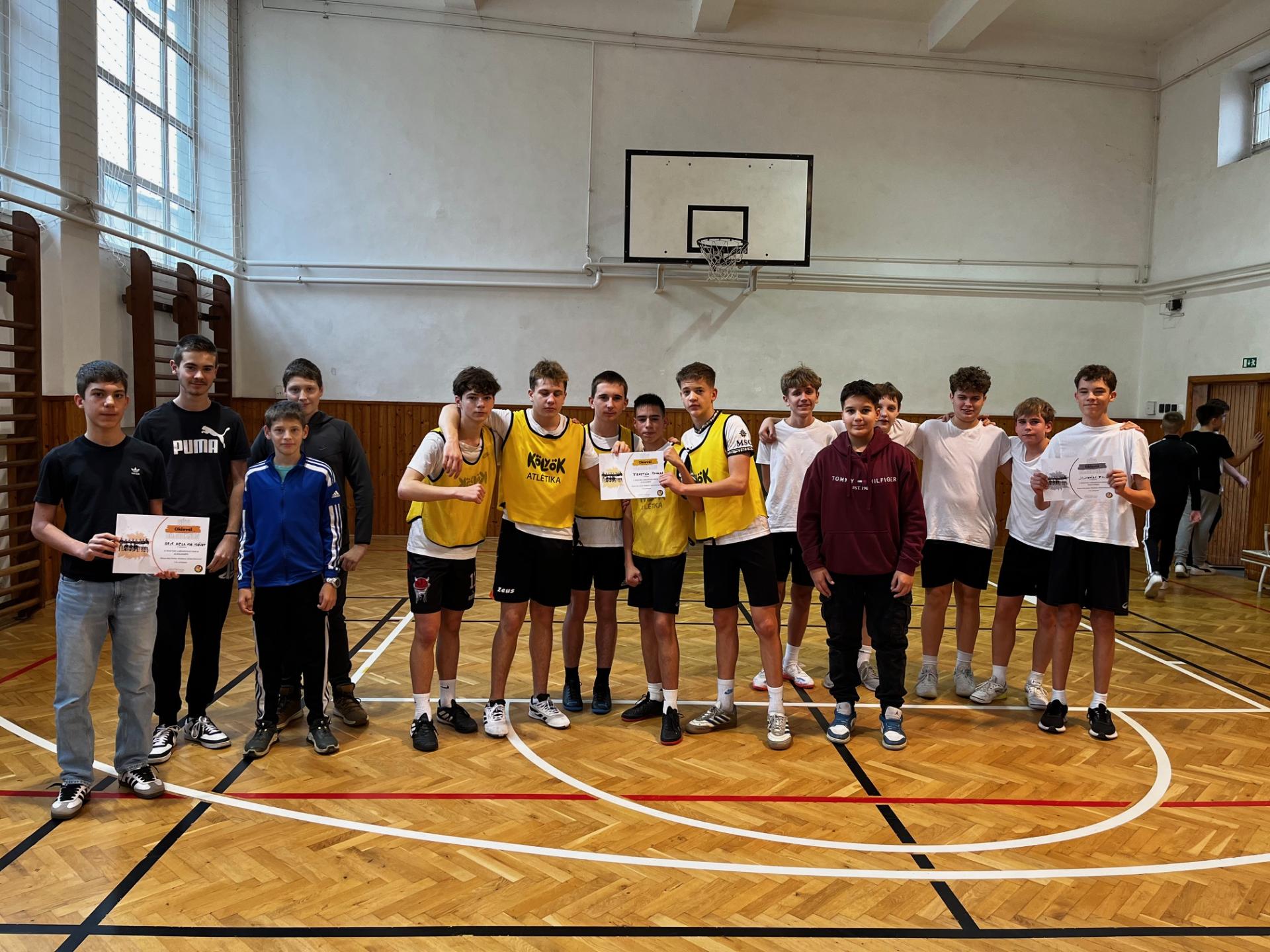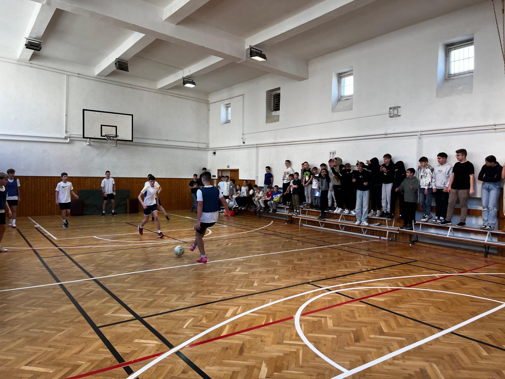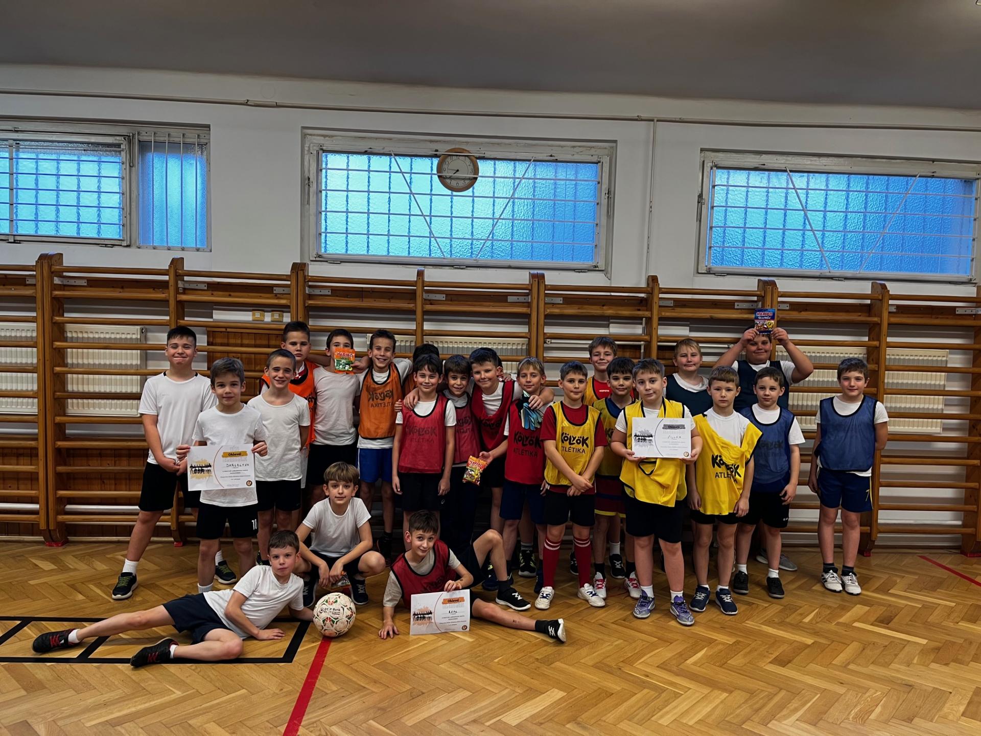 Iskolánkban idén is megrendezésre került a Magyar Labdarúgás Napja alkalmából a házi bajnokság. Minden korosztály képviseltette magát. A versenyt nevezés előzte meg, ahol fantázia névvel és névsorral lehetett regisztrálni. Az alsósok szakköri időben küzdöttek meg egymással, míg a felsősök nagyszünetben játszották le körmérkőzéseiket. Nagy küzdelemben és talán még jobb hangulatban teltek a mérkőzések, hiszen a nagyszünetekben lelkes szurkolótábor gyűlt össze, ami nagy lendületet adott a játékosoknak. Az 1-3. helyezettek okleveles elismerésben is részesültek, de a többi résztvevő csapat sem távozott üres kézzel. Gratulálunk minden versenyzőnek, és jár az elismerés a lelkes szurkolásért a diáktársaknak is.
