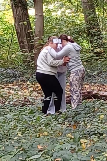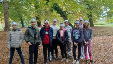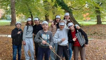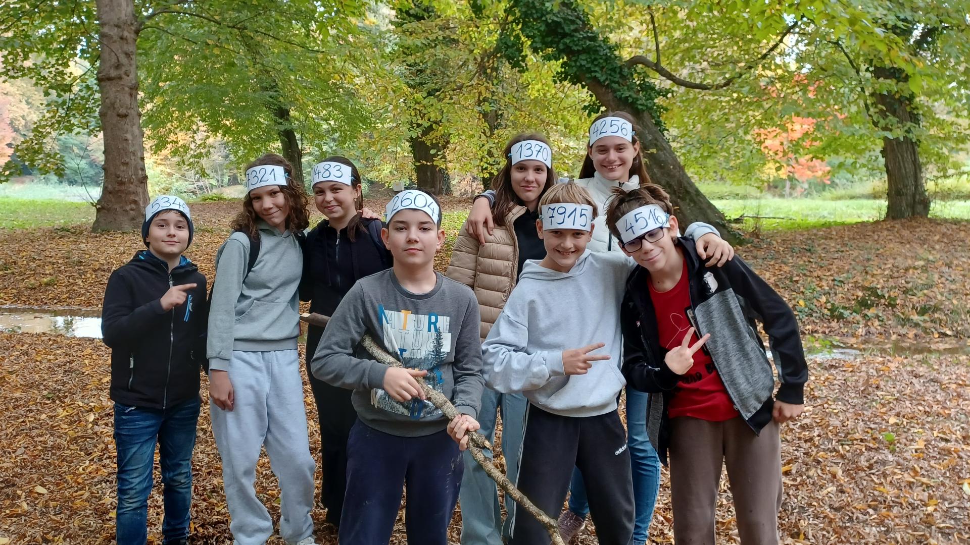 Péntek délután a 6.a osztály az őszi színekben pompázó várkertben számháborúzott.