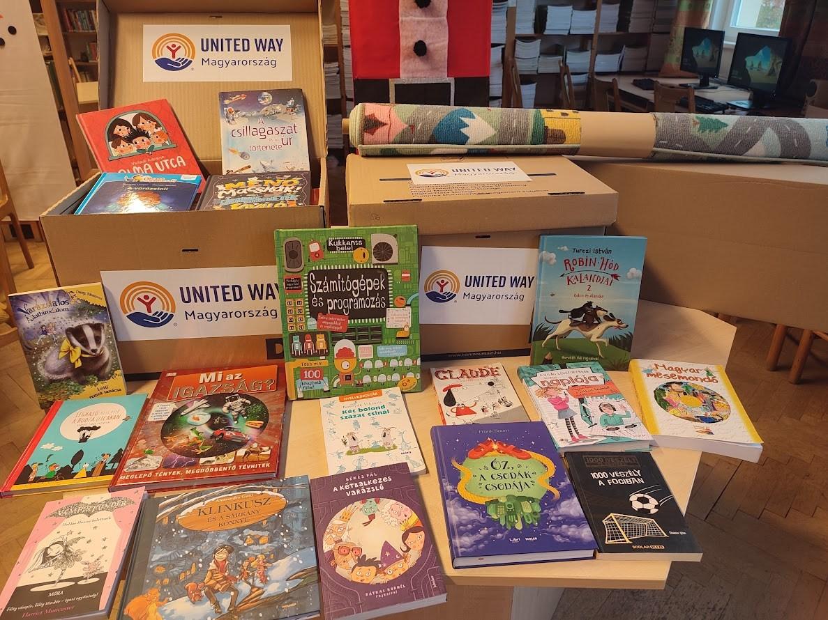 Örömmel számolunk be arról, hogy iskolánk könyvtára sikeresen szerepelt az United Way Magyarország, a világ legnagyobb, magánadományokból és vállalati támogatásokból fenntartott non-profit szervezetének „Az értő olvasásért” programjának pályázatán. Ennek eredményeként intézményünk 100 darab új gyermek- és ifjúsági könyvvel, egy könyvtári polccal és egy színes szőnyeggel gazdagodott.
