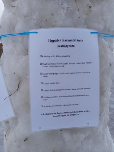 A tartósan hideg időjárás lehetőséget teremtett arra, hogy hosszú idő után újra jégpályát varázsoljunk iskolánk udvarára. Az ötlet és a megvalósítás a testnevelőinknek és karbantartónknak köszönhető, különösen Bátorfi Kristóf, Petrovics Bálint Gombás Szabolcs kollégáinknak. Reméljük, hogy tanulóink a szabályok betartása mellett örömmel használják.