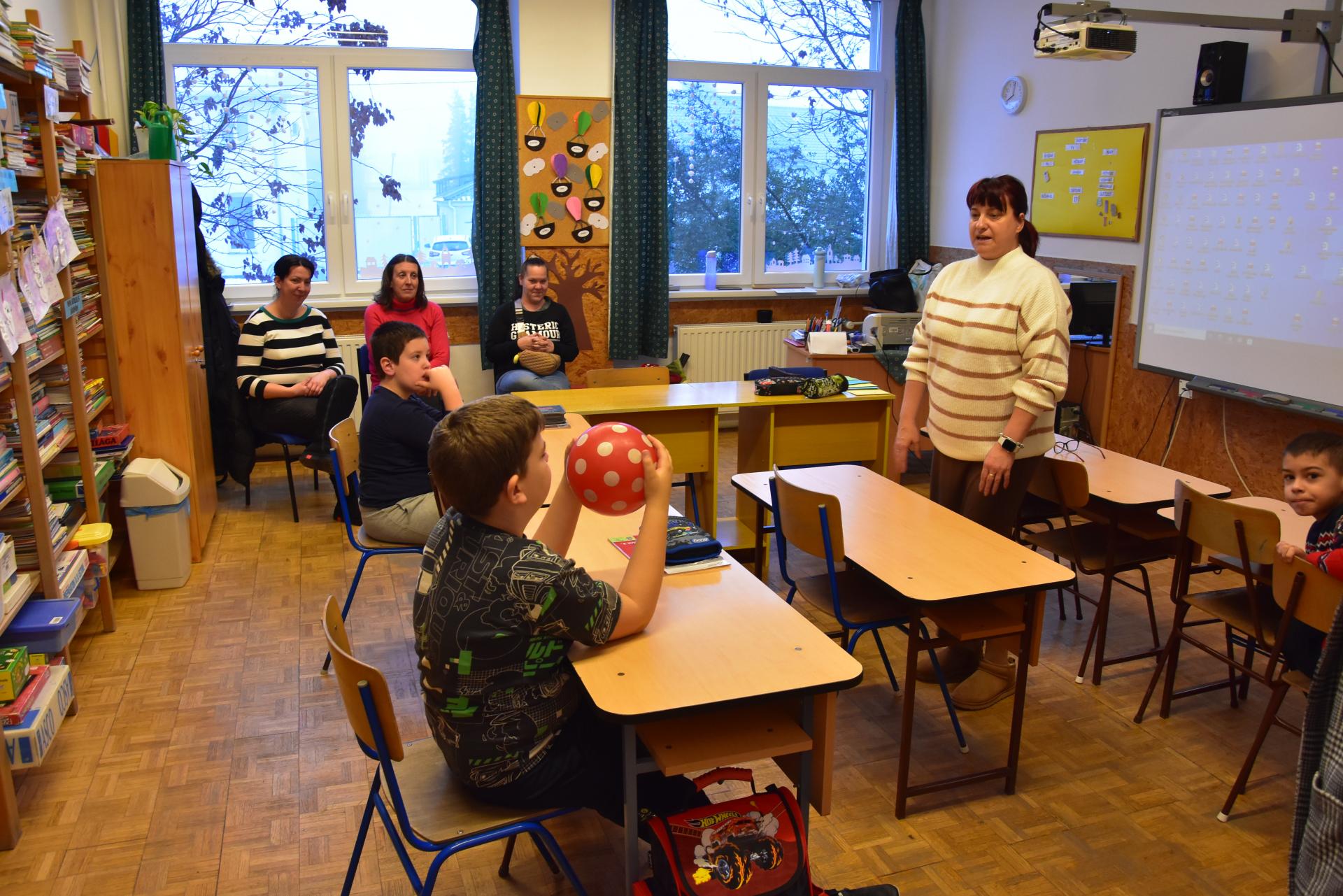A gyerekek a folyosón és a könyvtárban különféle fejlesztőjátékokat próbálhattak ki, eközben a szülőknek Igazgató asszony tartott rövid tájékoztatót.